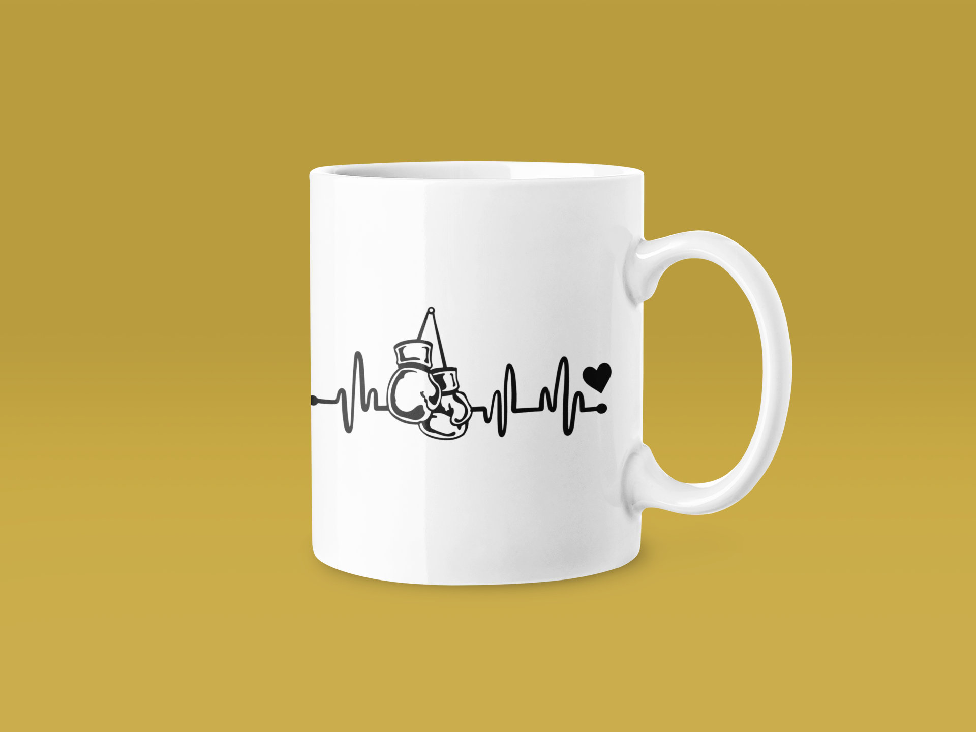 Boxing gloves merge with a heartbeat line and heart symbol in this emotionally resonant design. The composition celebrates the passionate, brave hearts that power every fighter’s dedication.