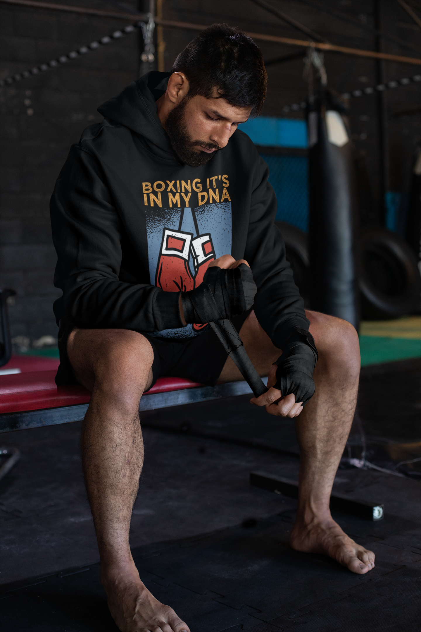 Make a statement with the Boxing In My DNA Hoodie — a premium heavyweight pullover built for boxing fans who train hard and live the fight life. This isn’t just another hoodie; it’s a bold piece of boxing apparel featuring a striking boxing in my dna graphic that turns heads at the gym, on fight night, or out on the streets.