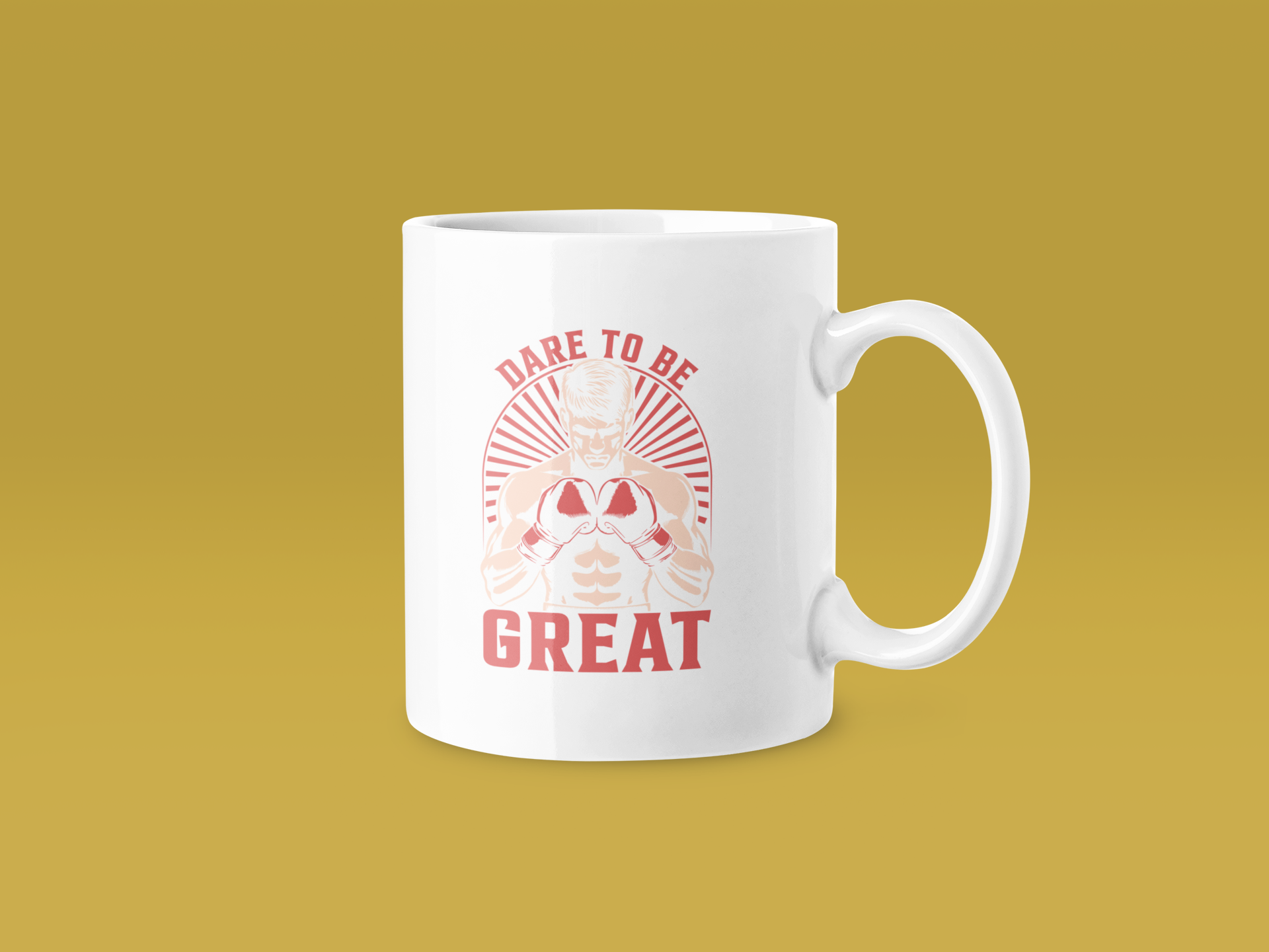 A bold motivational composition with ‘DARE TO BE GREAT’ frames a stylized boxer figure in this uplifting design. Pink and rose tones combined with radiating sunburst pattern celebrate confidence and ambition.