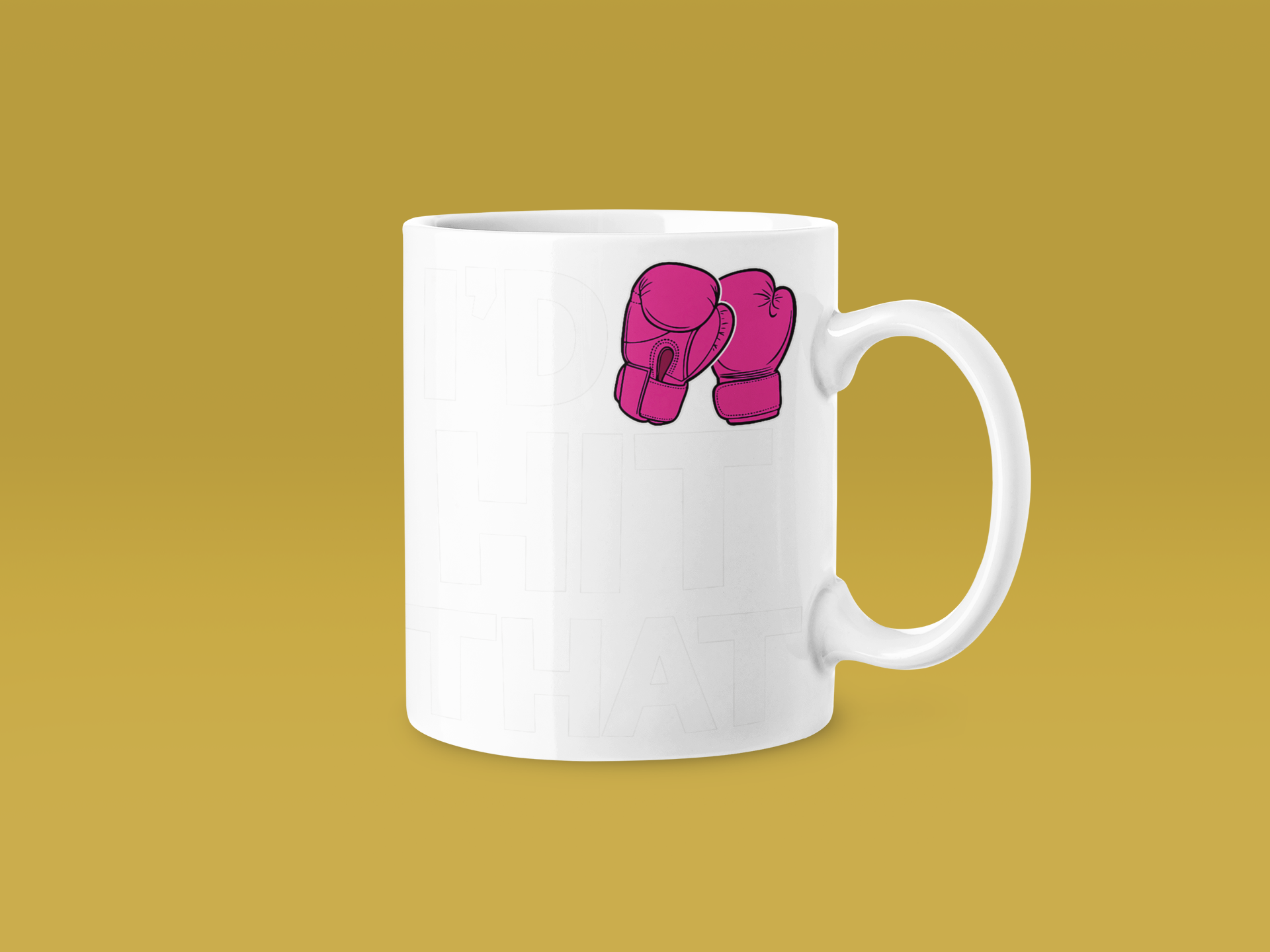 A vibrant design featuring bright pink boxing gloves with the phrase I’d Hit That, celebrating female power with bold colour. Fun, confident, and unapologetically feminine.