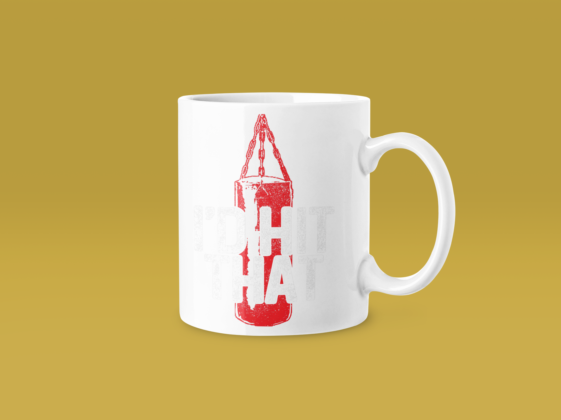 A design featuring a classic heavy bag with the phrase I’d Hit That, combining one of boxing’s most iconic training tools with playful double meaning. Practical and cheeky.