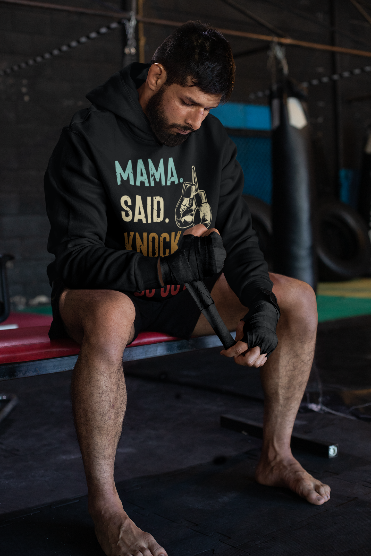 Make a statement with the Mama Said Knock You Out Hoodie — a premium heavyweight pullover built for boxing fans who train hard and live the fight life. This isn’t just another hoodie; it’s a bold piece of boxing apparel featuring a striking mama said knock you out graphic that turns heads at the gym, on fight night, or out on the streets.